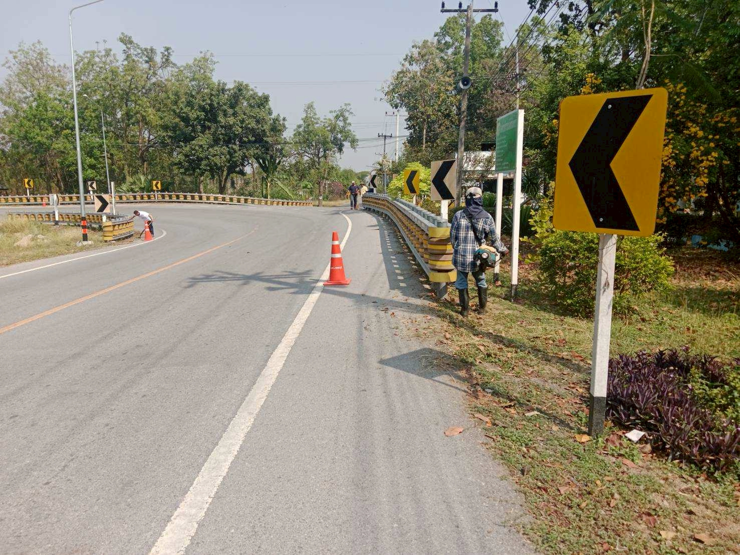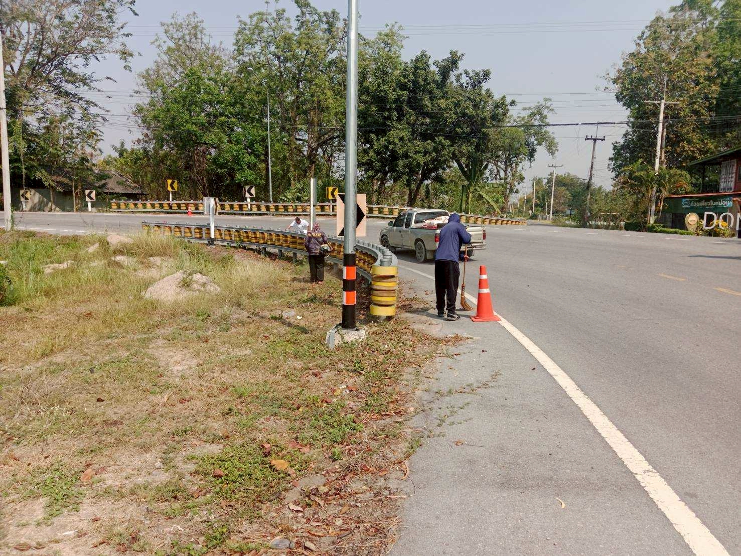 กองช่าง องค์การบริหารส่วนจังหวัดเพชรบุรี ดำเนินการกำจัดวัชพืชบริเวณราวลูกกลิ้งป้องกันอุบัติเหตุฯ สายท่าคอย - นายาง หมู่ที่ 11 ตำบลท่ายาง อำเภอท่ายาง จังหวัดเพชรบุรี เพื่อเป็นการเพิ่มทัศนวิสัยในการมองเห็นของผู้ใช้เส้นทาง