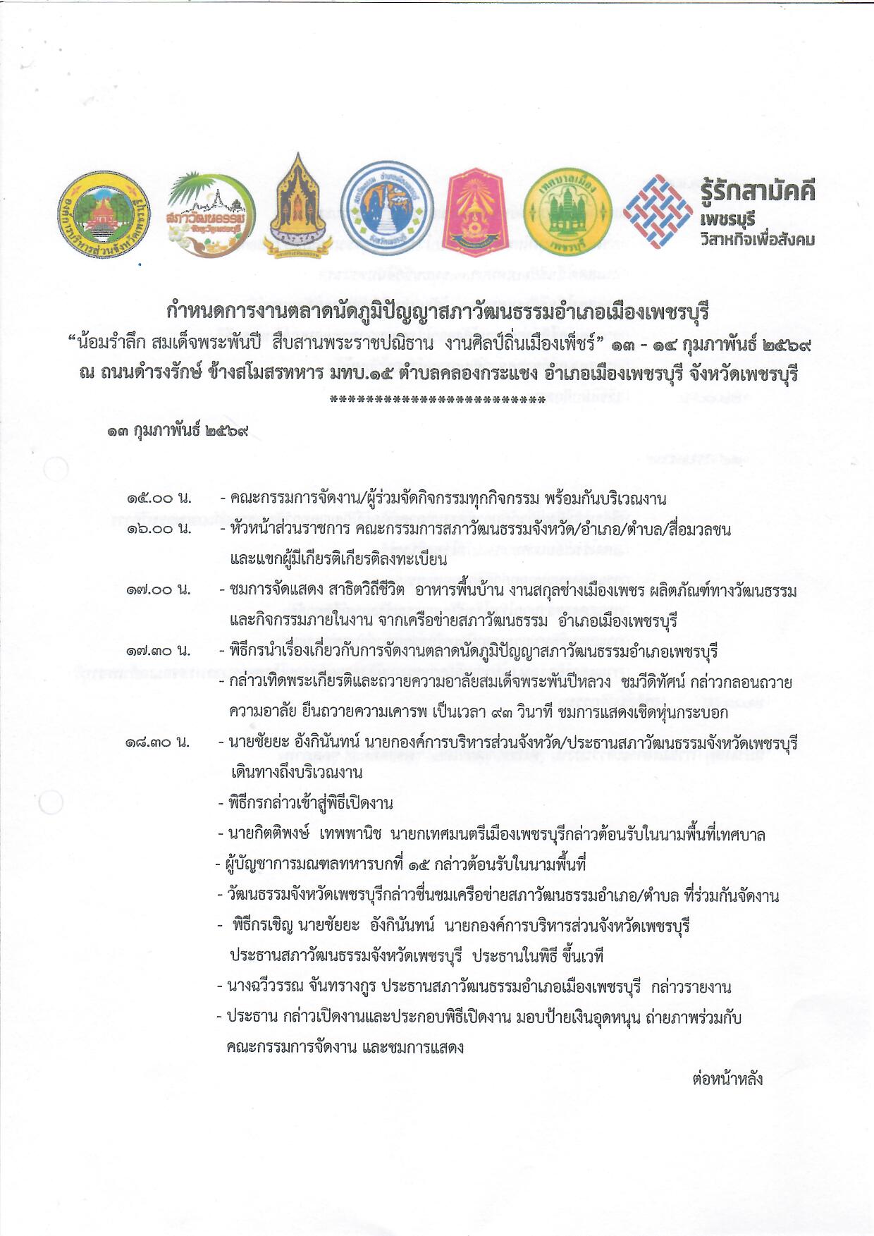 13 - 14 กุมภาพันธ์ 2569 ณ ถนนดำรงรักษ์ ข้างสโมสรทหาร มทบ.15 ตำบลคลองกระแชง อำเภอเมืองเพชรบุรี จังหวัดเพชรบุรี